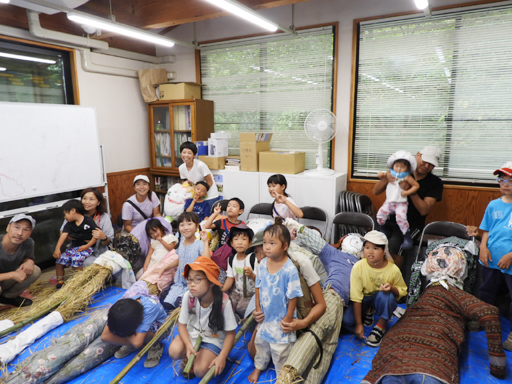 昨年の藁と古着を持ち寄って作る「みんなでかかしをつくろう」が開催されました。