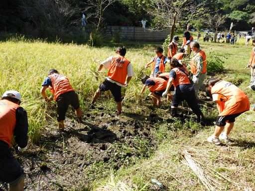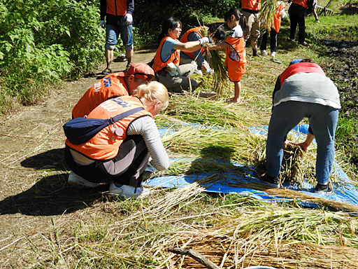 子どもたちも鎌を使用して稲刈りをしましたが、ケガなどの事故もなく無事稲刈り祭が終了しました。 初めて田んぼを見た、泥の中に入った感触が面白かった、稲を束ねるのは大変だったとの感想をいただきました。 お子さんが怖がるかと思ったけれど、とても楽しんでいたと、お子さんのたくましさに驚く保護者の方もいらっしゃいました。