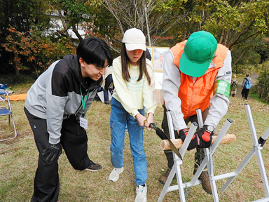 毎年子供たち人気ののこぎり引き体験やコースターづくり、稲藁をつかった正月飾りのワークショップも開かれました。