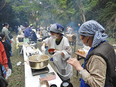 お餅、鎌倉広町産野菜がふんだんに使われた芋煮、焼き芋が次々と準備されました。