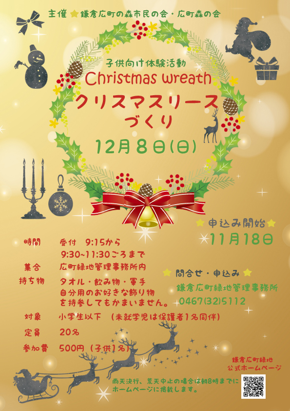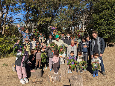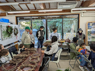 晴天となった日曜日、市民ボランティア「森の会」主催の、この時期にふさわしいイベント「クリスマスリースづくり」が開催されました。